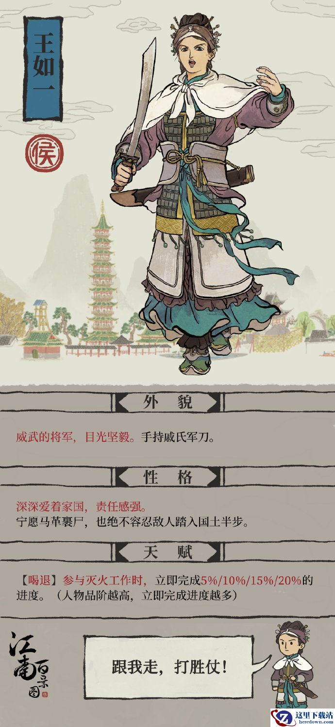 在江南百景图中,王如一是一位威武、目光坚毅的将军。