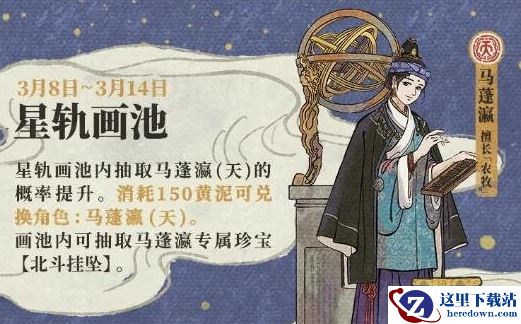 3月8日11:00至3月14日23:59,【星轨画池】开启!天级居民【马蓬瀛】概率提升;