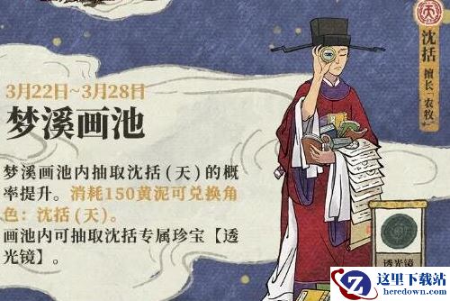 3月22日11:00至3月28日23:59,【梦溪画池】开启!天级居民【沈括】概率提升;