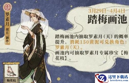 3月29日11:00至4月4日23:59,【踏梅画池】开启!天级居民【罗素月】概率提升。