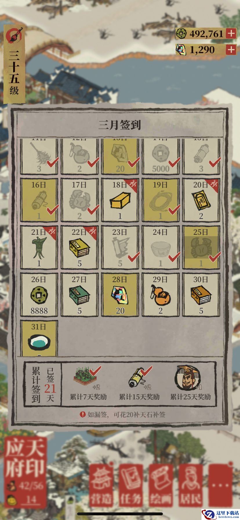 在3月月签中,累计签到25天就可以获得闲人嬴政了。