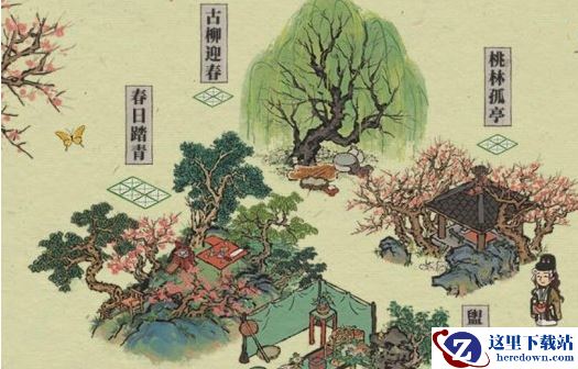 建筑上新:严大人新增建筑「古柳迎春」「桃林孤亭」「盥手观花」「春日踏青」