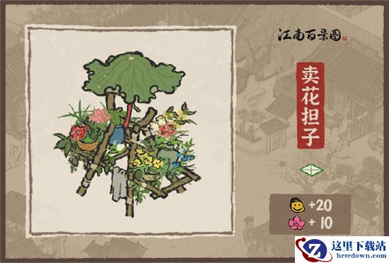 3、春游建筑有【太平花市】和【卖花担子】,太平花市占地面积2*3。