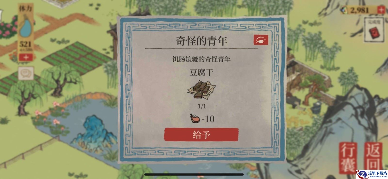 在右上角多了一块迷雾,点击迷雾前的牌坊,然后进入,在第三个房子兑换豆腐干,然后将豆腐干交给奇怪的青年,这些就是目前新增的任务,后面的任务还没更新,需要等到下次活动了。
