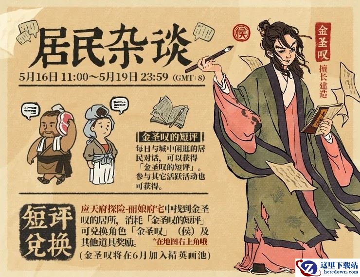 与城中闲逛居民对话,获取【金圣叹的短评】道具。