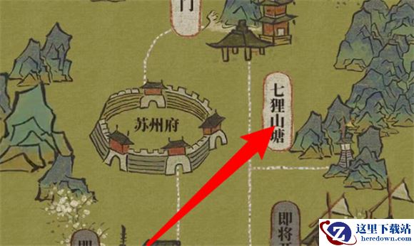 3、进入七狸山塘地图,穿过牌坊就可以来到山茶花园了。