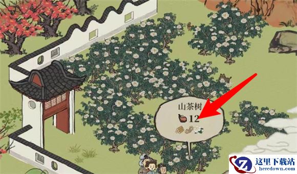 3、点击山茶树,消耗12点体力即可采摘山茶花。