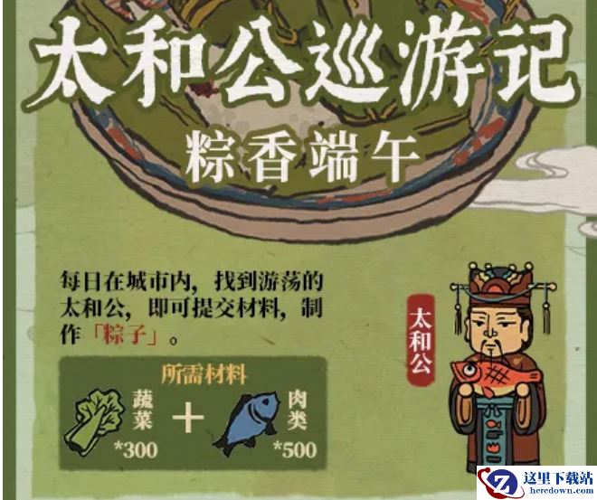 在城中找到太和公,提交食材,烹饪粽子即可领取补天石、金画轴、闲谈小憩等奖励。