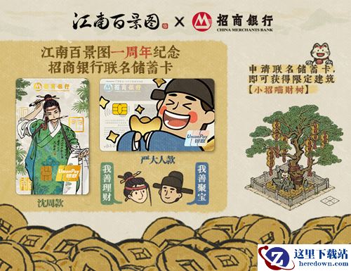 联名卡面有两款 —— 严大人•我善聚宝、沈周•我善理财。让他们的“专属技能”陪伴知府们畅行于理财之路吧!申请联名储蓄卡还可在卡面激活后获取限定建筑【小招喵财树】。