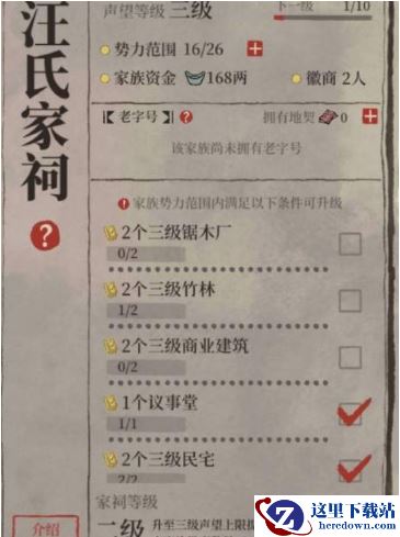 提升家族的等级可以获得更多的徽商人数,同时可以提升当前的声望等级。