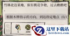 竹林北边某地,似有桃花争艳,过去瞧瞧吧。