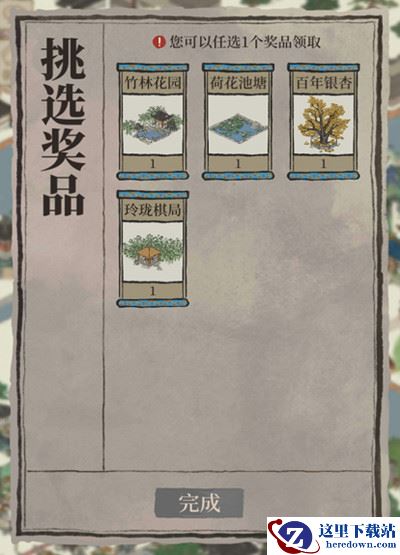 具体来说,可选的四个建筑分别是:竹林花园、荷花池塘、百年银杏、玲珑棋局。