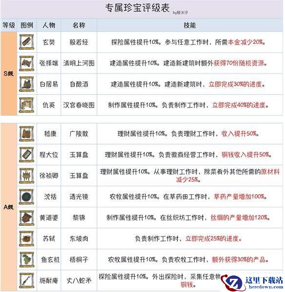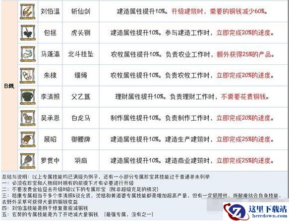 其他没提及的要么-1工人,减铜钱,减少&获得菜肴,加速体力恢复,固定制作生产场所导致非常局限,也是那句话,优先级不高!其实真正强的也就S级的专属!