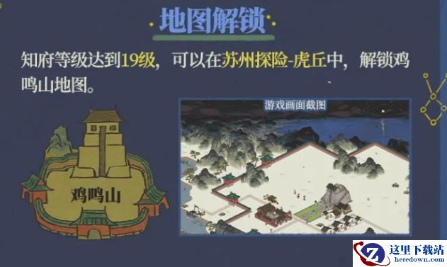 可以在苏州探险虎丘中,解锁鸡鸣山地图。