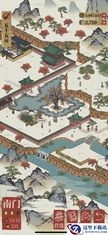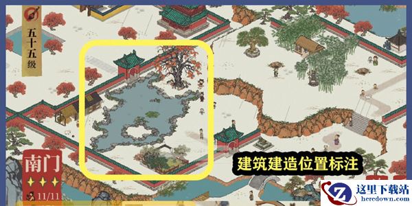 1、南门里的湖景建造有一定难度,一共需要准备35个人工湖。