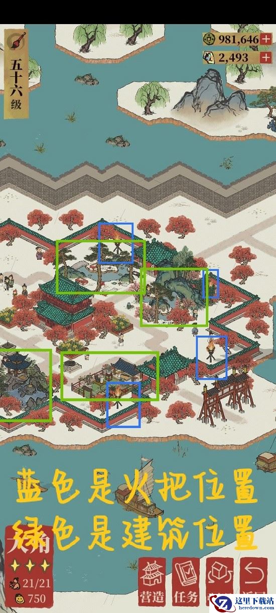 1、火把与建筑位置如下: