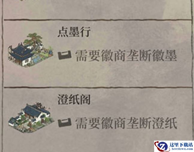 1、想要在江南百景图建造点墨行,我们首先需要徽商垄断徽墨。