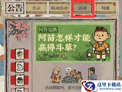 2、在这里玩家可以看见“阿苗怎么才能赢得斗草”活动,直接点击即可进入。