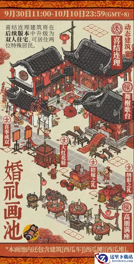 画池内含「喜结连理」、「舞榭歌台」、「高朋满座」等多款限时活动建筑。