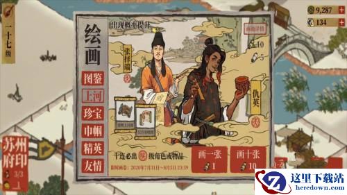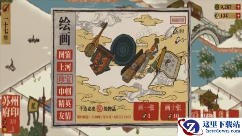 1、登录江南百景图的游戏中,点击下方的绘画。