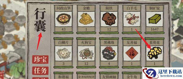 2、然后行囊中中就可以找到已经获得的茱萸花了。