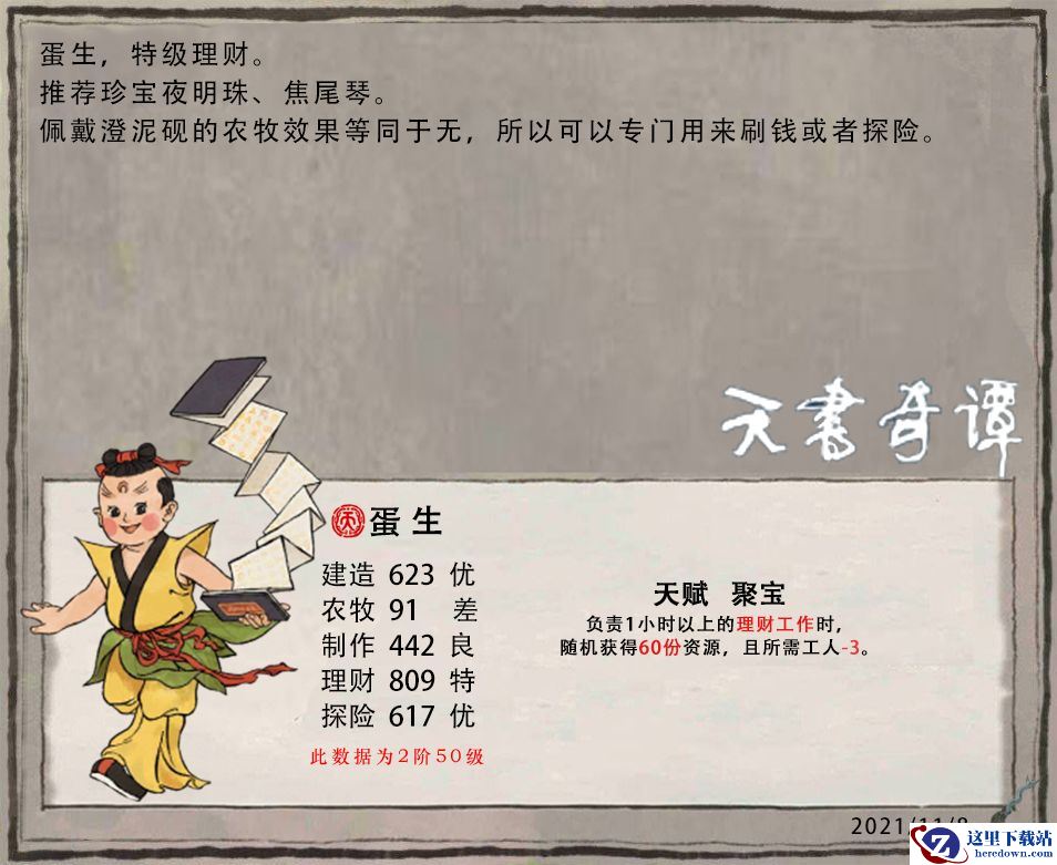 《江南百景图》游戏中蛋生是新上线的人物,天赋是1个小时以上理财工作可以随机获得60份资源。那么今天小编就给大家介绍一下江南百景图蛋生技能天赋,有需要的小伙伴不要错过了。