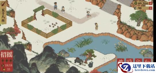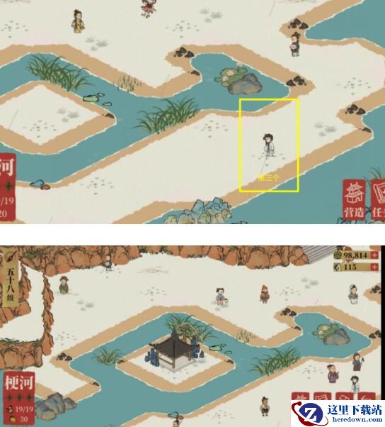 扩建泉眼可以移动人工湖,这样就不用再建新的了,把它们连起来就行。(可以把桂花树移开,这样就不会被挡住视野了)