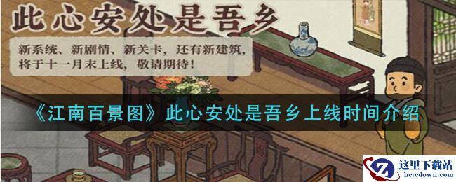 在江南百景图游戏中很多玩家还不清楚,此心安处是吾乡新版本的上线时间是什么时候。下面就让小编给大家带来《江南百景图》此心安处是吾乡上线时间介绍,感兴趣的小伙伴们一起来看看吧。