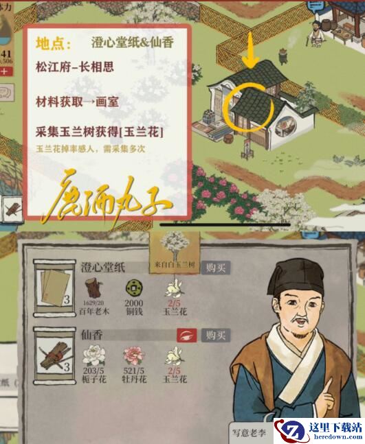 材料兑换→画室,采集白玉兰即可获得[玉兰花]