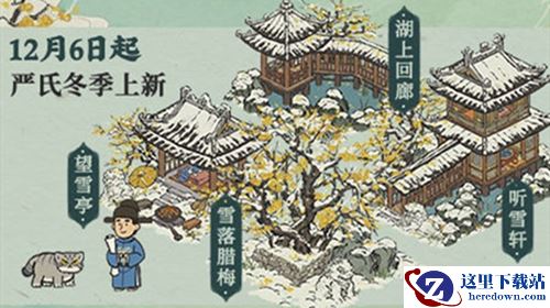 2.在冬至活动期间,除了会上线新限定建筑望雪亭之外,还会上线湖上回廊、听雪轩、雪落腊梅。