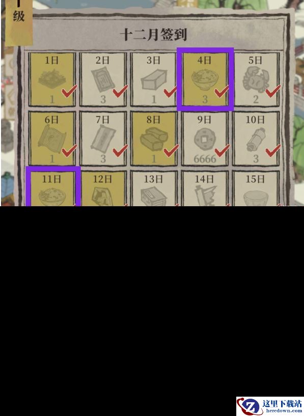 此外,本月【月签到】4号、11号、18号、24号分别可获得3个合【12个赤豆糯米饭】,所以每天坚持打卡的玩家只需驱赶【13个小鬼】。