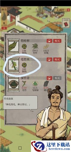 首先钓鱼需要用到钓鱼竿,还有鱼饵,所以说大家需要去获得钓竿,在毛竹田将毛竹米种下,出现毛竹林点击就可以收获毛竹,然后去鱼竿店制作钓鱼竿。