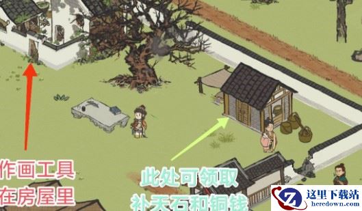 1.作画工具在绣房的这个房屋中,点击就能够找到,也是比较简单的一个任务。