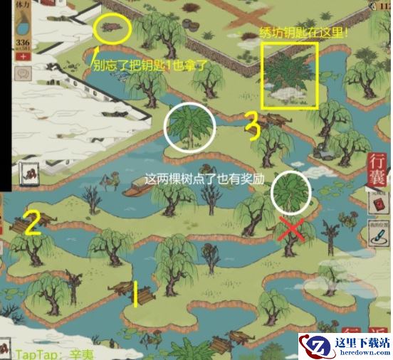 2.有几棵枯树需要浇灌,浇灌之后可以获得仙豆、补天石,但要注意把枯树周围的荒废民宅都点一遍(点完可以获得泉水和铜钱以及补天石)