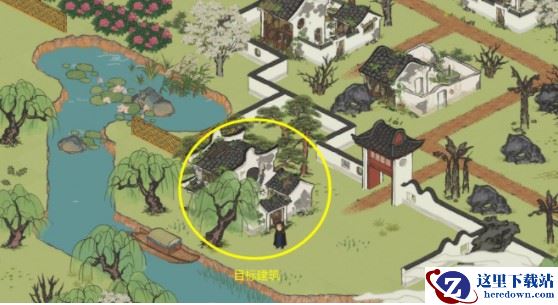 找到五级民宅外观(查看需要玉兰花×4)的才是目标建筑,其他的是浇灌枯树用的