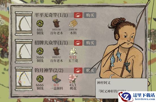 1、前往阿又渔具店,购买阿又的鱼竿。