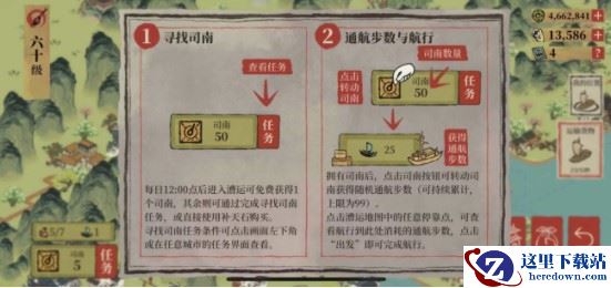 (三)用法:进入漕运,点击左下角“司南”转动,每转动一次消耗一个司南,获得随机步数。