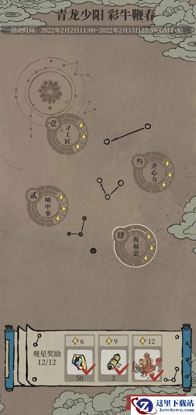 本星宿关卡为新春限定关卡,开放时间为2022年2月2日11:00~2022年2月15日23:59(北京时区),逾期后将无法进入本关卡。所以请各位知府大人在活动结束前完成关卡、领取奖励并将关卡内的特殊建筑取出。