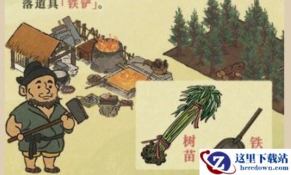 在冶铁工坊生产铁板时,即有概率掉落【铁铲】道具。