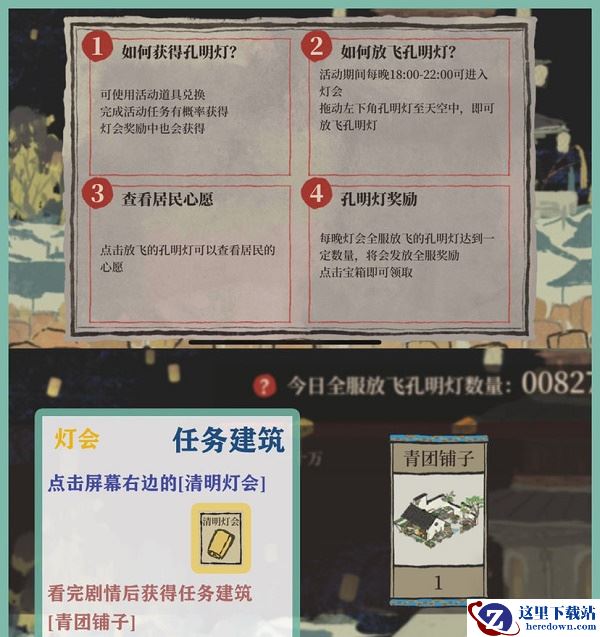 一、灯会每日刷新每日孔明灯放飞次数达十万、三十万、五十万均有奖励
