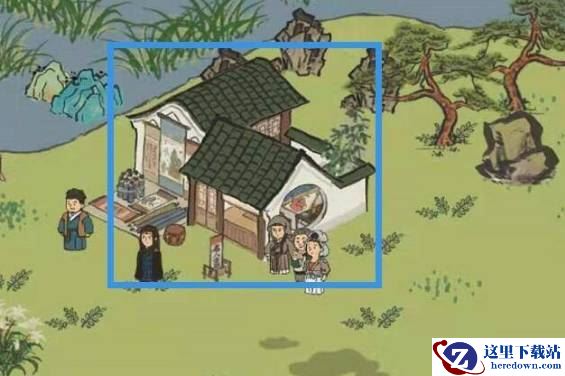 3、在这里我们可以看到有一家在河边的商店,这是一家画室。