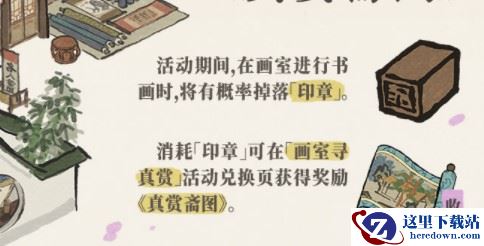 获得印章后,就可以在画室寻真赏活动中,兑换奖励真赏斋图。