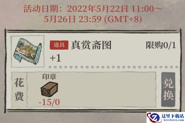 2、印章可以在画室寻真赏活动的兑换界面中兑换【真赏斋图】。