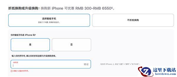 另外,苹果官网可选择折抵换购或升级换购,换购新iPhone可优惠300元到6550元不等。输入你的序列号,可确认你的折抵金额与升级换购资格。