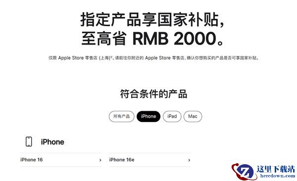 需要注意的是,目前苹果官网显示仅限Apple Store零售店 (上海)线下购买,才能享受国家补贴。