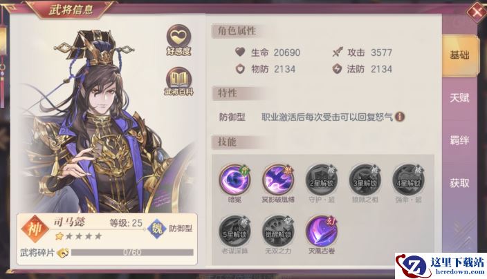 1、司马懿是游戏三国志幻想大陆中的防御型武将。随着战场中作战单位的减少,他会变得越来越强大。