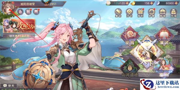 1、玩家进入三国志幻想大陆游戏后,点击左上角的人物头像,如下图所示。