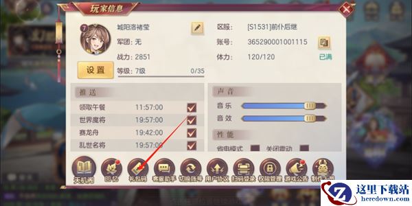 2、进入个人中心界面后点击下方的礼包码选项,位置如下图所示;