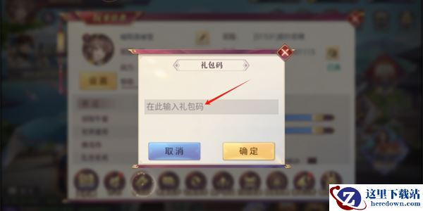 3、最后在礼包兑换界面,在兑换框中输入上方的礼包码,并点击确定即可兑换奖励。