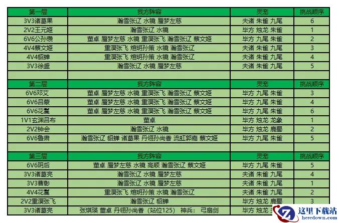 (丹翎孙尚香打后排的关使用太史慈羁绊,其他使用马云禄羁绊、蜃梦左慈默认华佗羁绊、流虹郭嘉默认张辽羁绊、重溟张飞默认关羽羁绊、瀚雪张辽默认乐进羁绊、煊明孙策默认孙尚香羁绊,武将有专武的默认带专武)